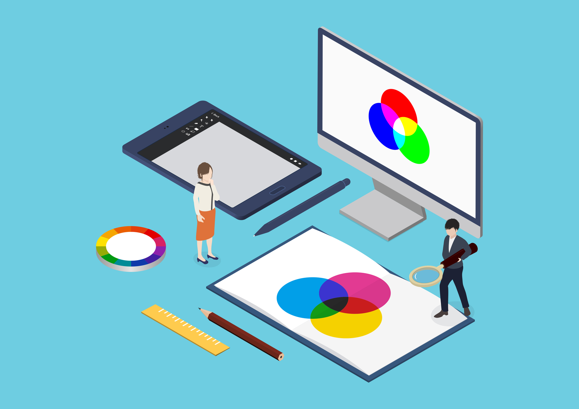 CMYKとは、印刷専用のカラーモードのことで、ディスプレイ用のRGBモードとは異なります。もしデータがディスプレイ用のRGBの状態のままだと、印刷工程においてCMYKに自動変換されてしまうため、理想の色とは異なる仕上がりになってしまう可能性があります。